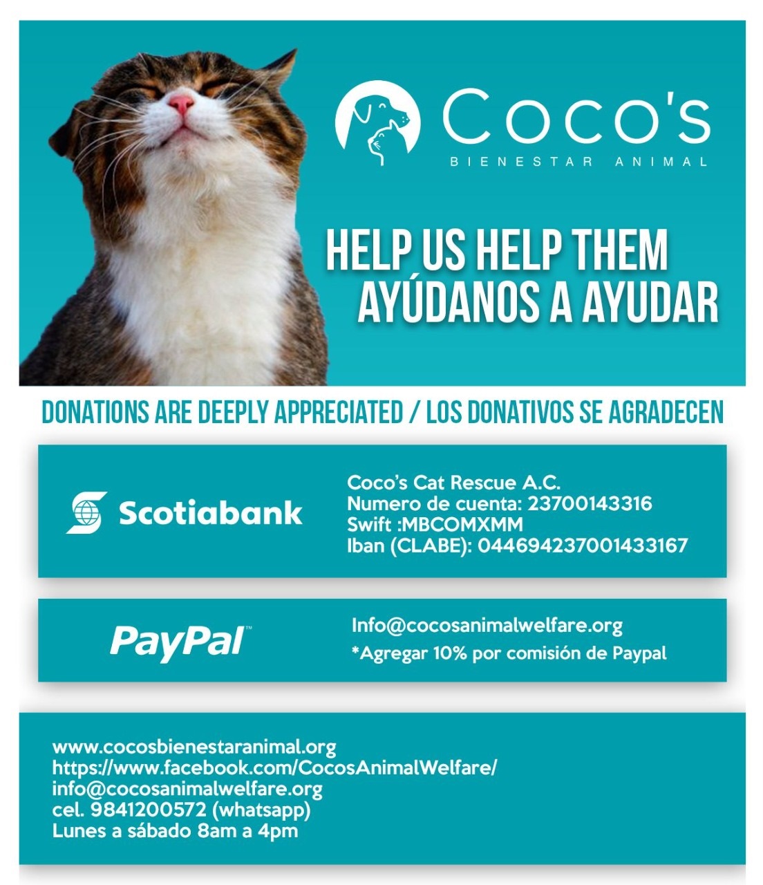 Cash donations are needed to fund our spay neuter program as well as the adoption program. Cocos relies on generous people to donate to continue helping the animals in our community.
